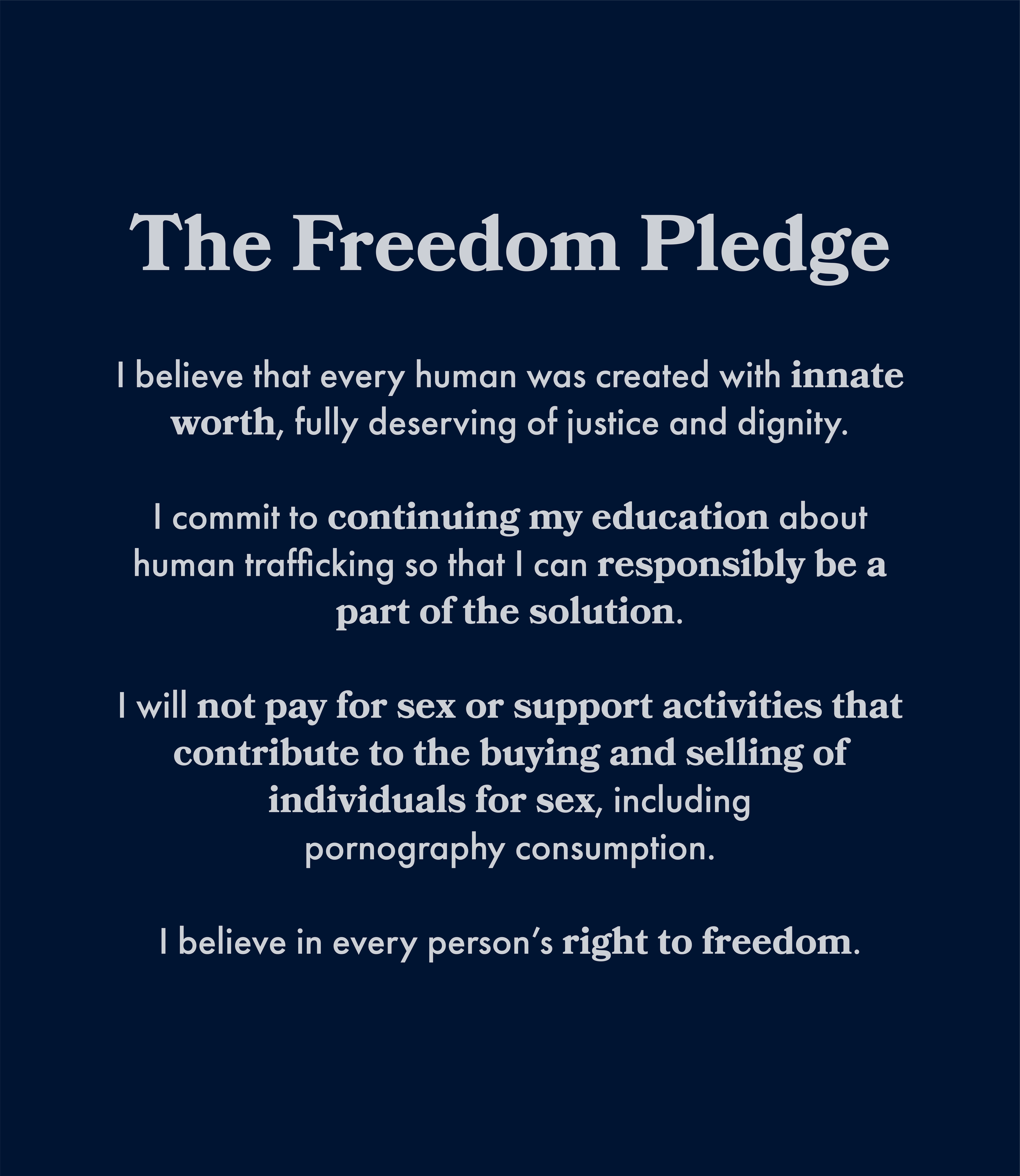 By signing this pledge, you take a public stand against trafficking and a step toward attacking the industry of trafficking on the demand side. The truth is that we’re all uniquely gifted with our own circles of influence and charged with calling those around us higher.